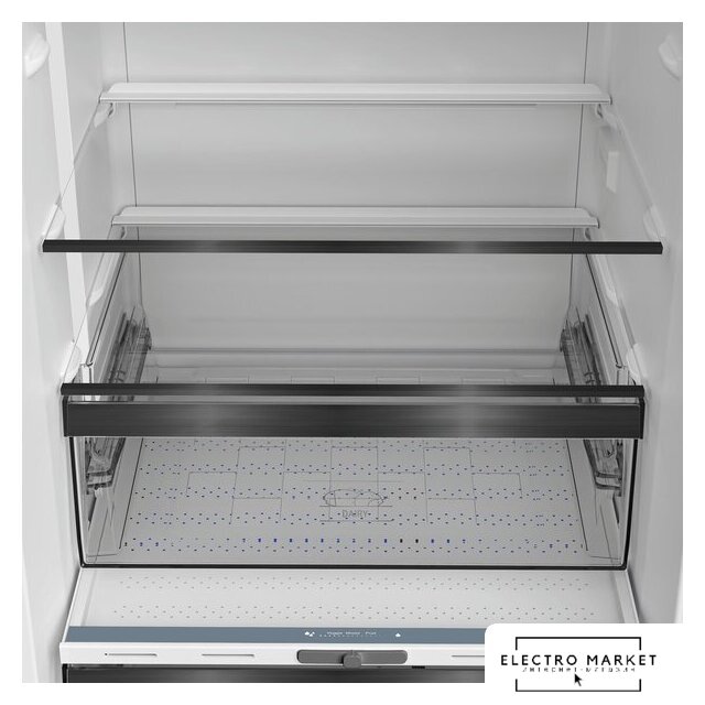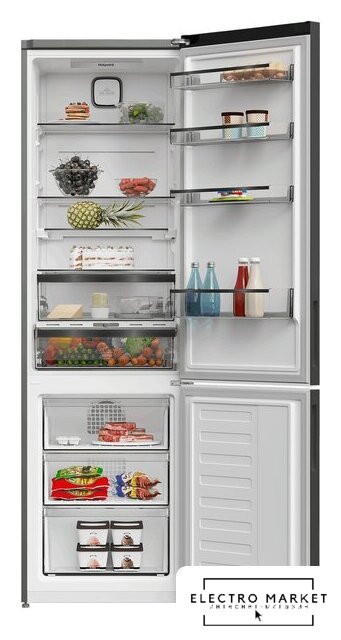 отдельностоящий, без No Frost, электронное управление, класс A+, полезный объём: 370 л (251 + 119 л), зона свежести, перенавешиваемые двери, выдвижной/подвесной контейнер, лоток для яиц, 59.5x62.7x206.8 см, серебристый