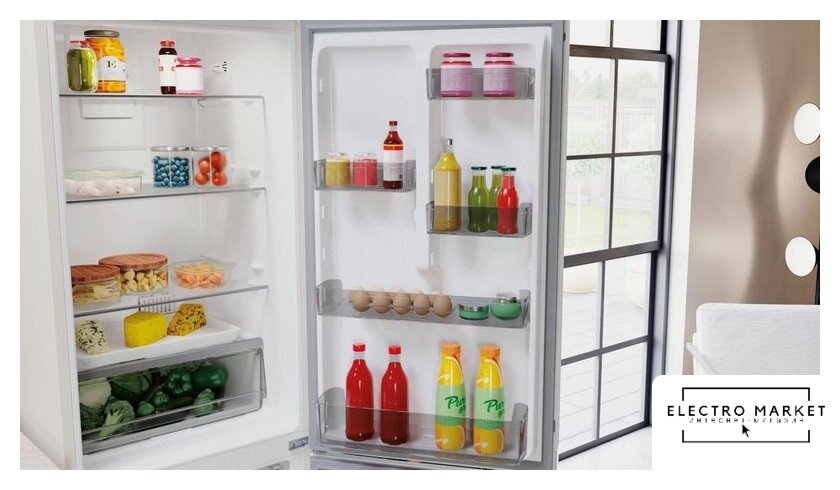 отдельностоящий, полный No Frost, электронное управление, класс A+, полезный объём: 225 л (161 + 64 л), перенавешиваемые двери, лоток для яиц, 48.5x60x174.5 см, нержавеющая сталь