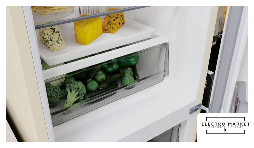 отдельностоящий, без No Frost, механическое управление, класс A+, полезный объём: 331 л (237 + 94 л), перенавешиваемые двери, лоток для яиц, 57.4x62.5x203.4 см, бежевый/мраморный