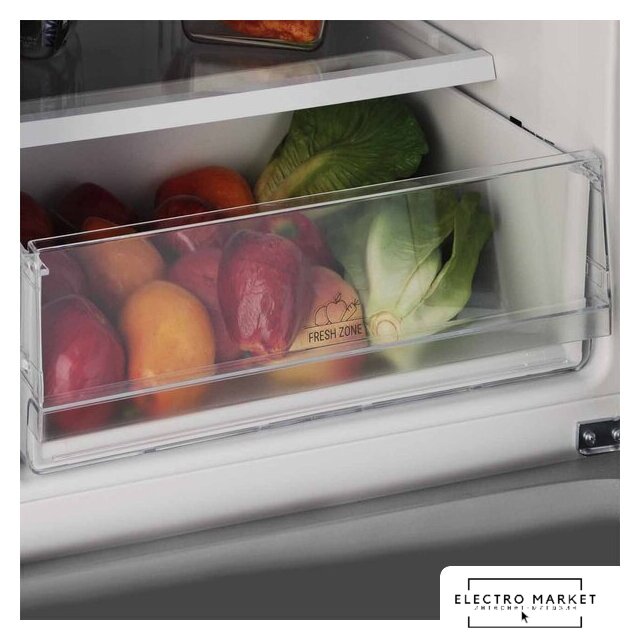 отдельностоящий, полный No Frost, электронное управление, класс A+, полезный объём: 287 л (207 + 80 л), перенавешиваемые двери, лоток для яиц, 59.5x59x178.5 см, белый