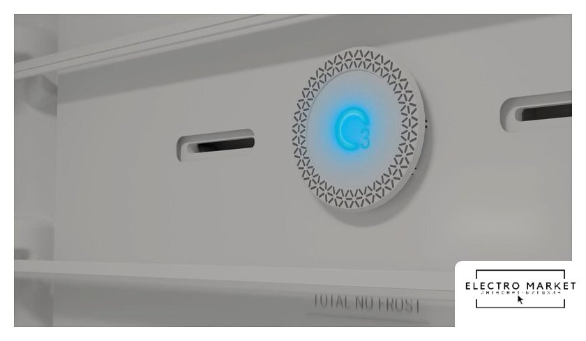 отдельностоящий, полный No Frost, электронное управление, класс A++, полезный объём: 302 л (203 + 99 л), зона свежести, перенавешиваемые двери, лоток для яиц, 59.5x59.2x185 см, белый