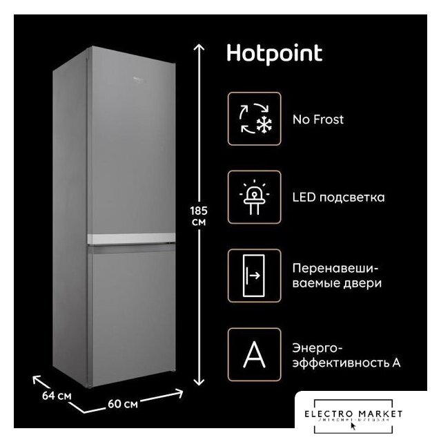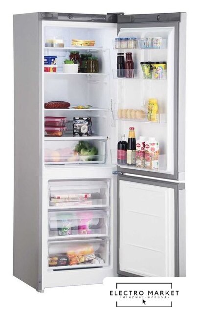 отдельностоящий, полный No Frost, механическое управление, полезный объём: 247 л (165 + 82 л), перенавешиваемые двери, лоток для яиц, 54x60x180 см, серебристый