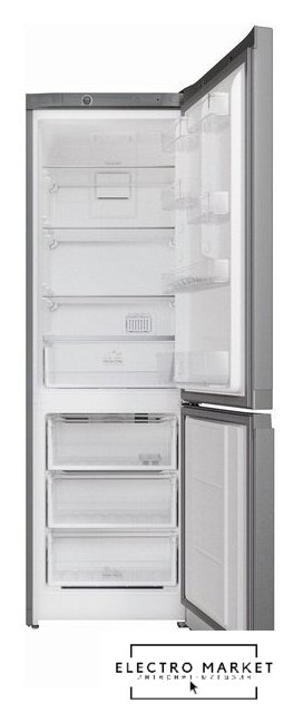 отдельностоящий, без No Frost, электронное управление, класс A+, полезный объём: 364 л (205 + 159 л), зона свежести, подставка-лоток для бутылок, лоток для яиц, 59.5x62.7x206.8 см, серебристый