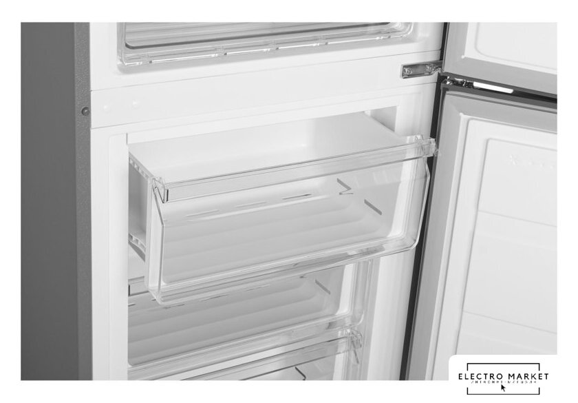 отдельностоящий, без No Frost, электронное управление, класс A+, полезный объём: 364 л (205 + 159 л), зона свежести, перенавешиваемые двери, выдвижной/подвесной контейнер, подставка-лоток для бутылок, лоток для яиц, 59.5x62.7x206.8 см, белый