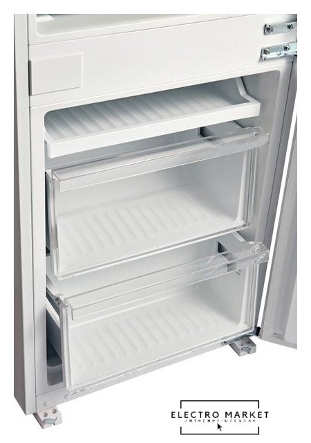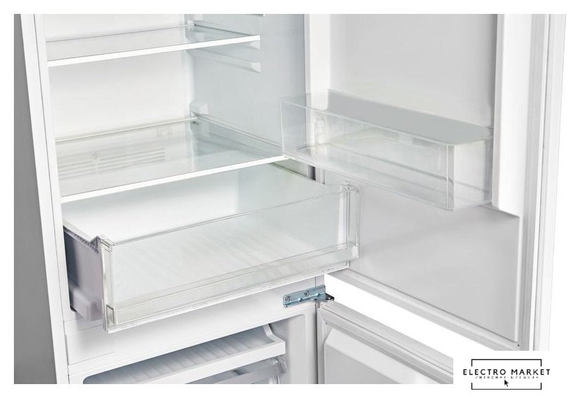 встраиваемый, полный No Frost, механическое управление, класс A+, полезный объём: 241 л (182 + 59 л), перенавешиваемые двери, лоток для яиц, 54x51x178.5 см, белый