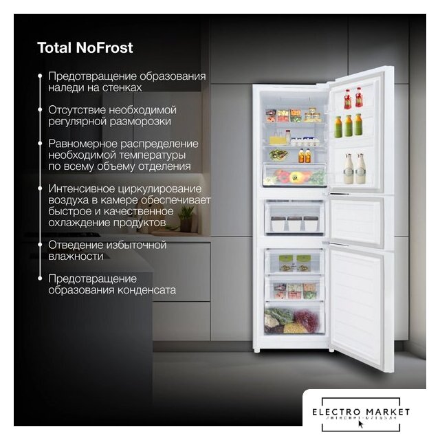 отдельностоящий, полный No Frost, сенсорное управление, класс A+, полезный объём: 335 л (240 + 95 л), перенавешиваемые двери, 59.5x63.5x195.3 см, нержавеющая сталь