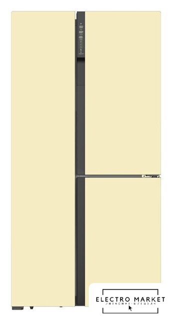отдельностоящий, полный No Frost, электронное управление, класс A++, полезный объём: 552 л (329 + 223 л), инверторный компрессор, лоток для яиц, отделка: стекло, 91.1x70.6x183 см, золотистый