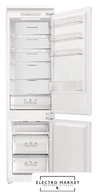 встраиваемый, полный No Frost, электронное управление, полезный объём: 241 л (177 + 64 л), перенавешиваемые двери, лоток для яиц, 54x54x176.9 см, белый