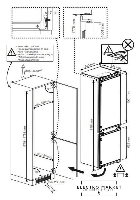 встраиваемый, No Frost (морозильная камера), электронное управление, класс A+, полезный объём: 243 л (180 + 63 л), перенавешиваемые двери, полка для вина, лоток для яиц, 54x54.5x177 см, белый