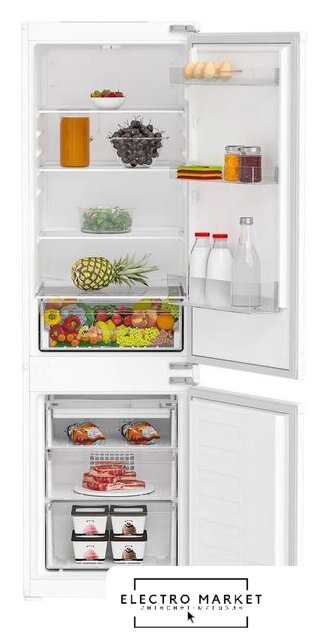 встраиваемый, скользящие направляющие, без No Frost, электронное управление, класс A, полезный объём: 186 л (171 + 15 л), перенавешиваемые двери, лоток для яиц, 54x55x121 см, белый