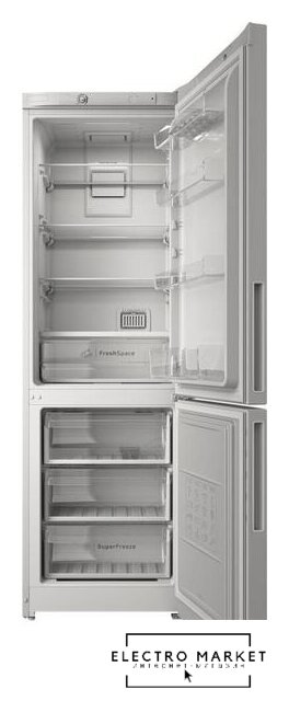 отдельностоящий, полный No Frost, механическое управление, класс A, полезный объём: 298 л (223 + 75 л), перенавешиваемые двери, лоток для яиц, 60x64x185 см, белый