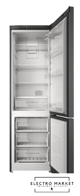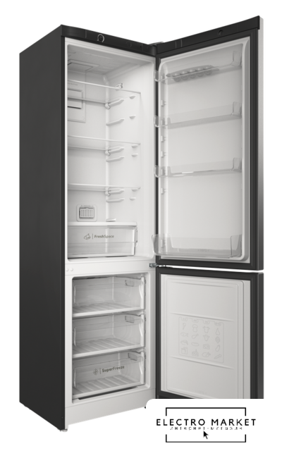 отдельностоящий, без No Frost, электронное управление, класс A+, полезный объём: 301 л (182 + 119 л), перенавешиваемые двери, лоток для яиц, 59.5x62.9x176.8 см, серебристый