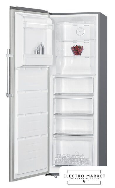 отдельностоящий, No Frost (морозильная камера), электронное управление, класс A+, полезный объём: 245 л, перенавешиваемые двери, использование в неотапливаемых помещениях, 59.5x65.5x186.8 см, серебристый