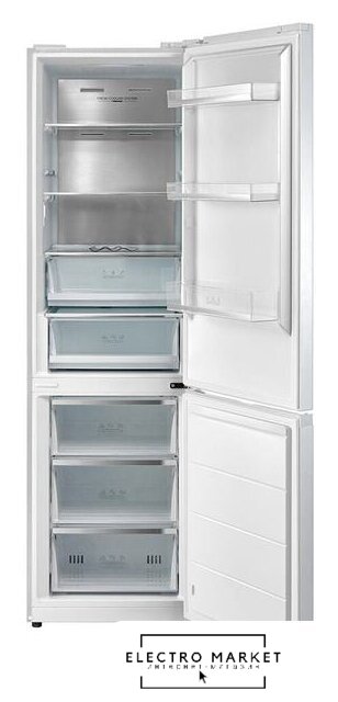 отдельностоящий, полный No Frost, электронное управление, класс A+, полезный объём: 466 л (283 + 183 л), инверторный компрессор, лоток для яиц, отделка: стекло, 91x60x183.6 см, белый
