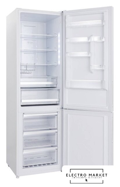 отдельностоящий, No Frost (морозильная камера), электронное управление, класс A++, полезный объём: 348 л (225 + 123 л), инверторный компрессор, перенавешиваемые двери, подставка-лоток для бутылок, лоток для яиц, 59.7x67.5x201.5 см, белый