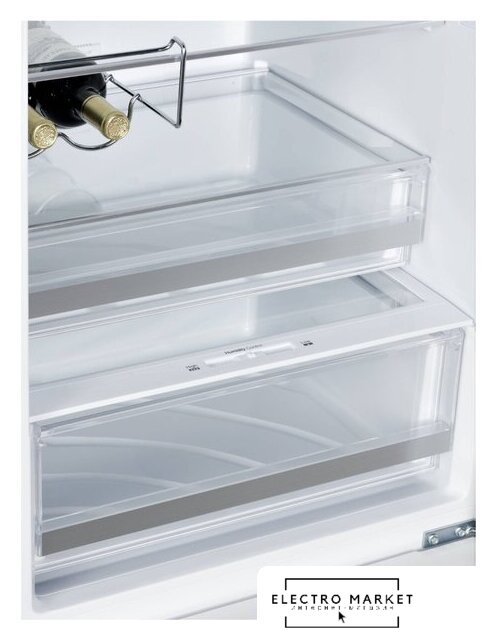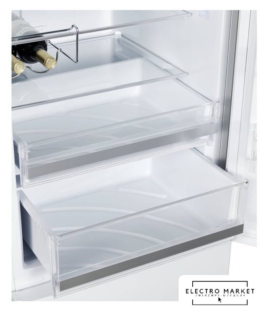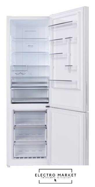 отдельностоящий, полный No Frost, сенсорное управление, класс A++, полезный объём: 320 л (215 + 105 л), инверторный компрессор, зона свежести, перенавешиваемые двери, полка для вина, лоток для яиц, 59.5x65x190 см, белый