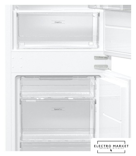 встраиваемый, полный No Frost, электронное управление, класс A+, полезный объём: 210 л (140 + 70 л), инверторный компрессор, перенавешиваемые двери, лоток для яиц, 54x54x177.2 см, белый
