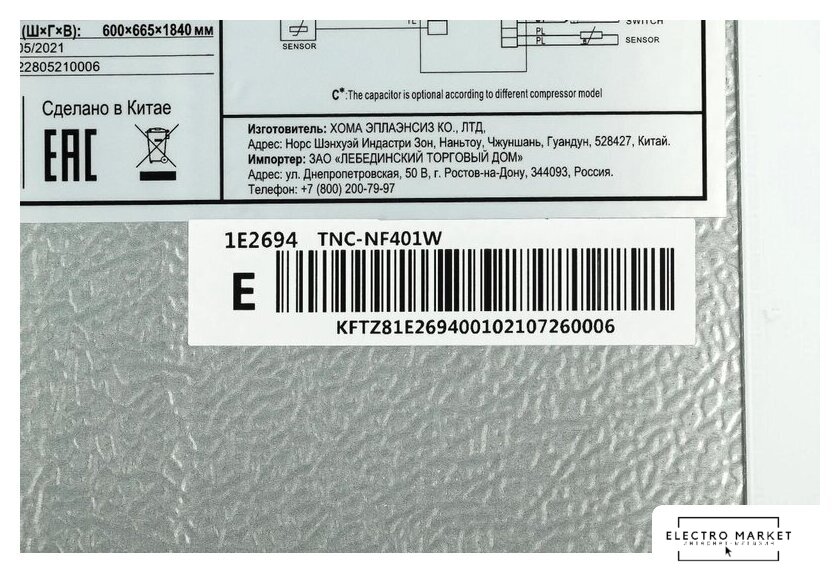 | Режимы и функции | суперзаморозка, независимая регулировка температуры, ECO, отпуск, сигнал открытой двери, блокировка от детей |