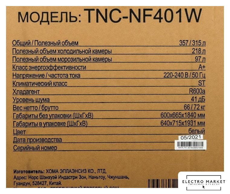 отдельностоящий, полный No Frost, сенсорное управление, класс A+, полезный объём: 319 л, инверторный компрессор, перенавешиваемые двери, лоток для яиц, 60x60.5x201 см, белый