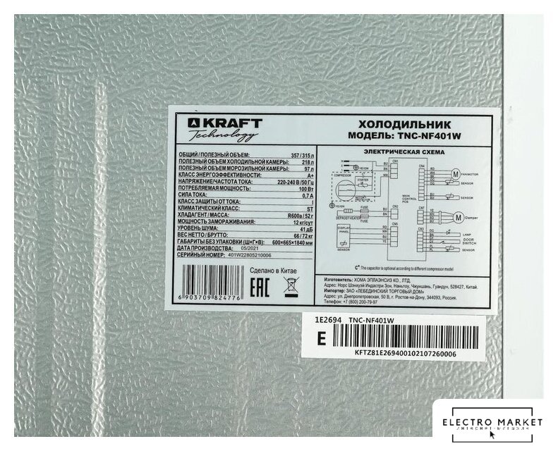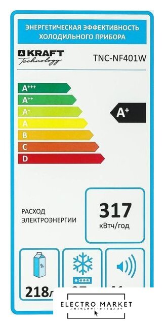 отдельностоящий, полный No Frost, электронное управление, класс A+, полезный объём: 311 л (213 + 98 л), инверторный компрессор, перенавешиваемые двери, выдвижная полка, лоток для яиц, 59.5x67.5x178 см, белый