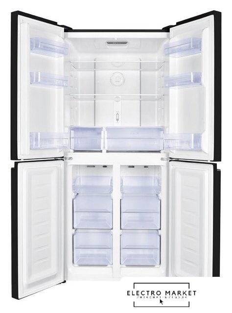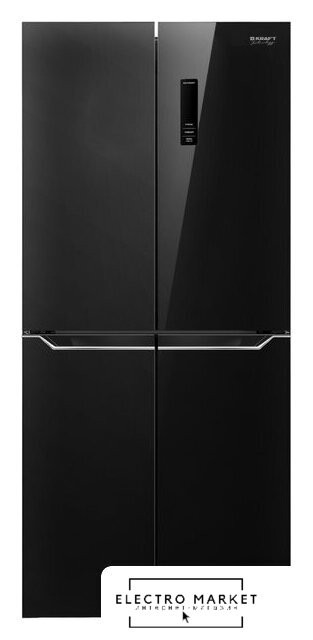отдельностоящий, полный No Frost, электронное управление, класс A+, полезный объём: 510 л (335 + 175 л), полка для вина, лоток для яиц, отделка: стекло, 89.5x69x178.8 см, черный