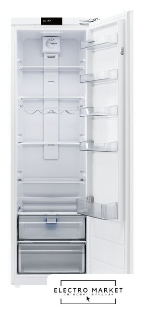 встраиваемый, полный No Frost, электронное управление, класс A+, полезный объём: 233 л (170 + 63 л), перенавешиваемые двери, полка для вина, лоток для яиц, 54x54.5x177 см, белый