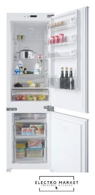 встраиваемый, полный No Frost, электронное управление, класс A+, полезный объём: 241 л, перенавешиваемые двери, лоток для яиц, 54x54x177 см, белый