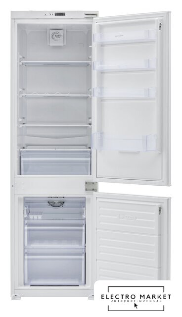 встраиваемый, без No Frost, электронное управление, класс A+, полезный объём: 270 л (195 + 75 л), перенавешиваемые двери, лоток для яиц, 54x55x177.6 см, белый