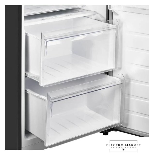 отдельностоящий, полный No Frost, электронное управление, класс A+, полезный объём: 459 л (186 + 167 л), инверторный компрессор, лоток для яиц, отделка: стекло, 91.1x63.6x183 см, графит