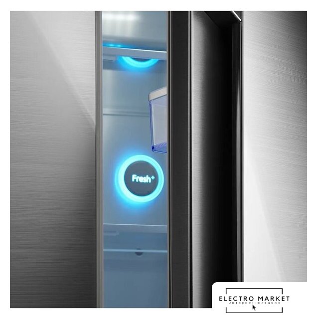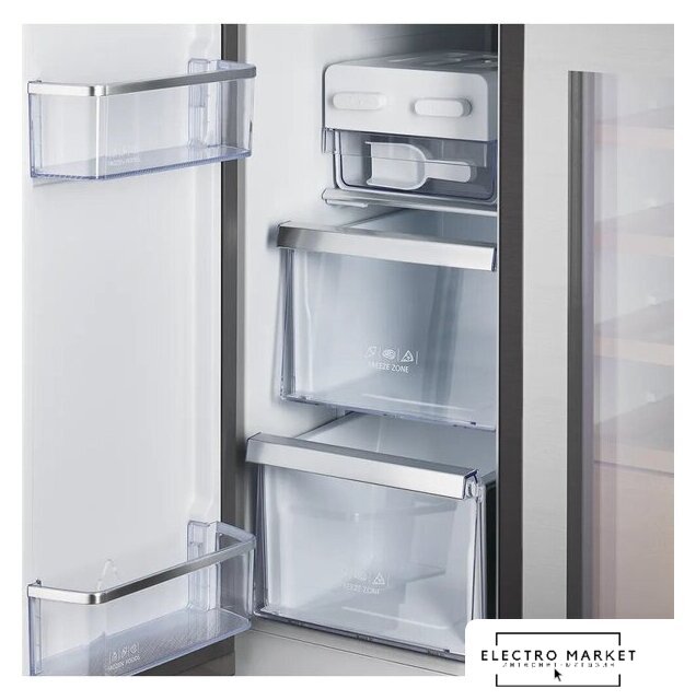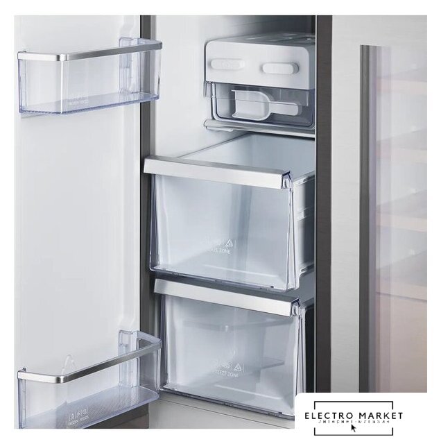 отдельностоящий, полный No Frost, электронное управление, класс A+, полезный объём: 540 л (354 + 186 л), инверторный компрессор, зона свежести, лоток для яиц, 85.3x69.3x193 см, темная сталь