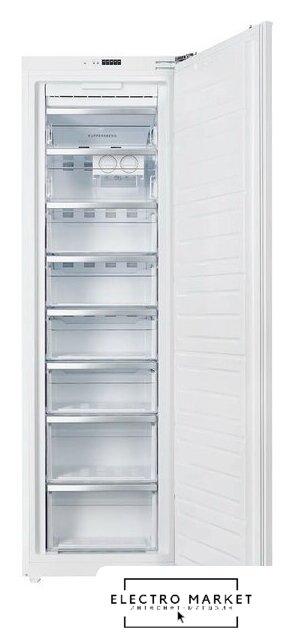 встраиваемый, скользящие направляющие, без No Frost, электронное управление, полезный объём: 271 л (198 + 73 л), перенавешиваемые двери, лоток для яиц, 54x54.9x177.2 см, белый