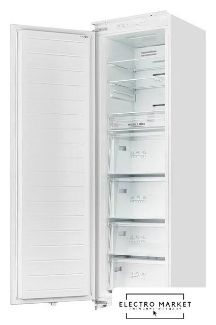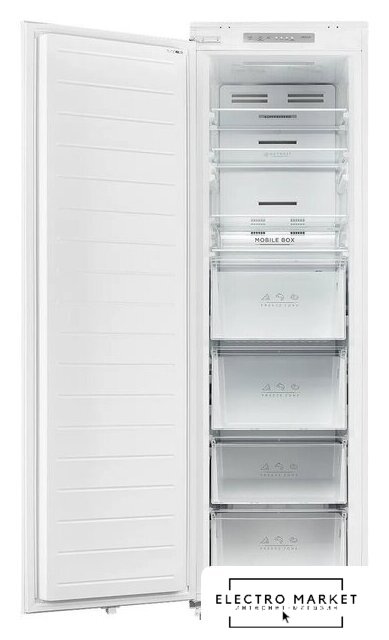 встраиваемый, скользящие направляющие, полный No Frost, механическое управление, класс A+, полезный объём: 248 л (180 + 67 л), перенавешиваемые двери, 54x54.5x177 см, белый