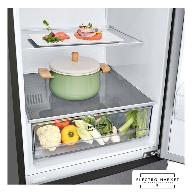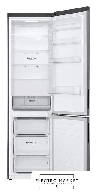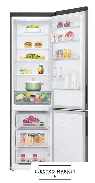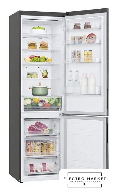 отдельностоящий, без No Frost, электронное управление, класс A+, полезный объём: 347 л (228 + 119 л), зона свежести, перенавешиваемые двери, выдвижной/подвесной контейнер, подставка-лоток для бутылок, лоток для яиц, ершик для чистки, 59.5x62.9x196.8 см, черный металлик