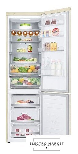 отдельностоящий, No Frost (морозильная камера), электронное управление, класс A, полезный объём: 360 л (266 + 94 л), инверторный компрессор, перенавешиваемые двери, лоток для яиц, 59.7x67.5x201.5 см, белый