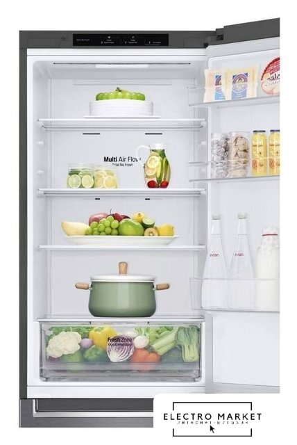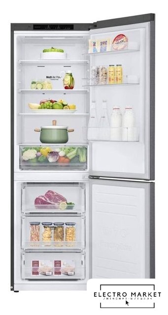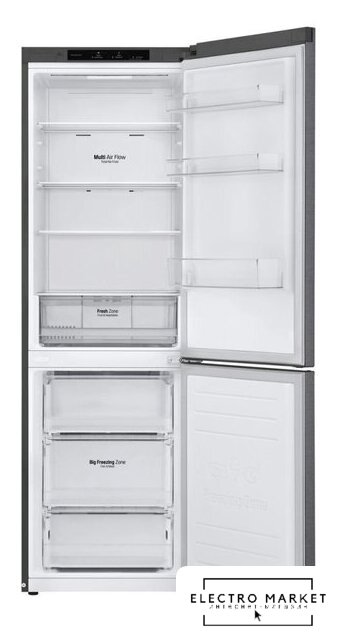 отдельностоящий, полный No Frost, электронное управление, класс A+, полезный объём: 322 л (239 + 83 л), инверторный компрессор, перенавешиваемые двери, нулевой зазор, складная полка, лоток для яиц, 60x62x198 см, темная сталь