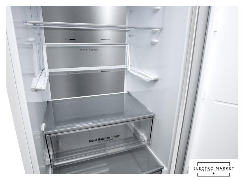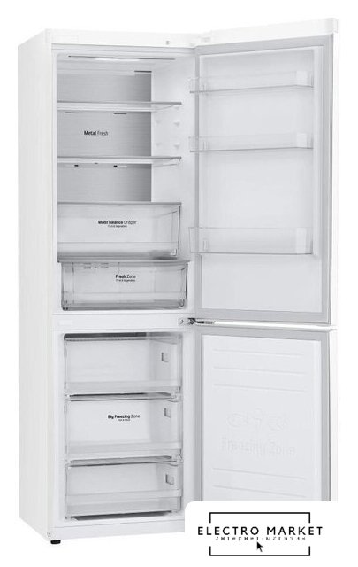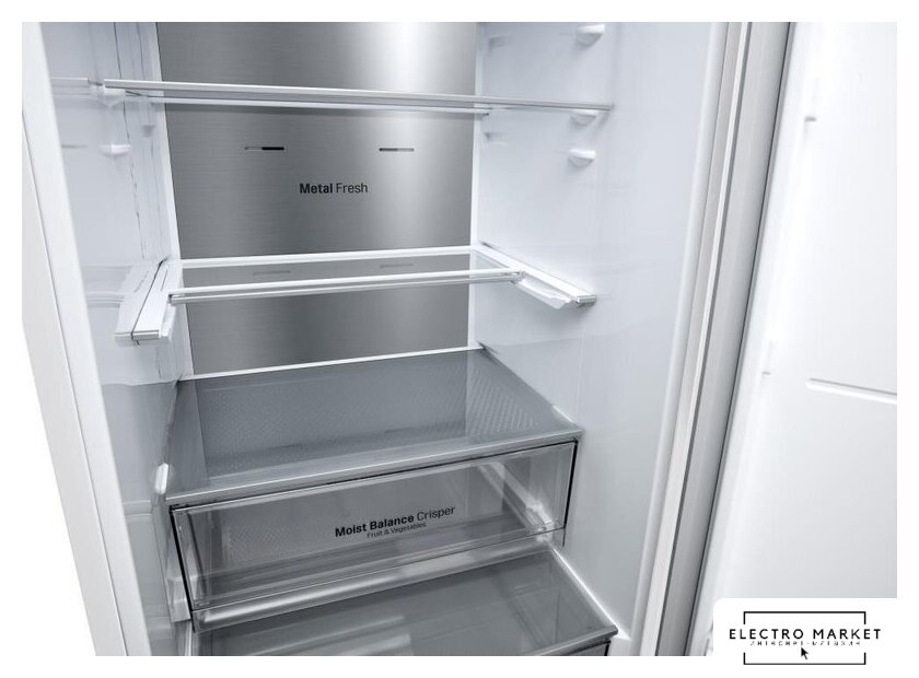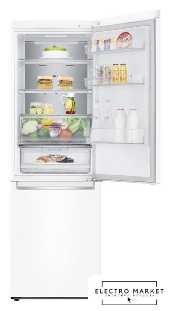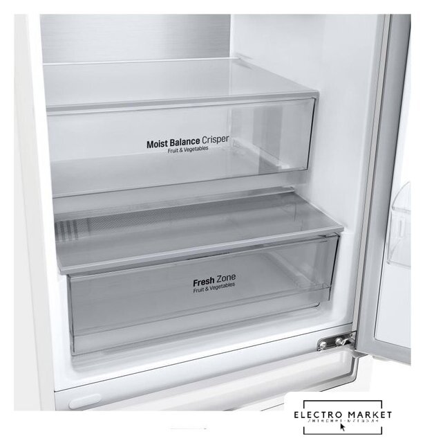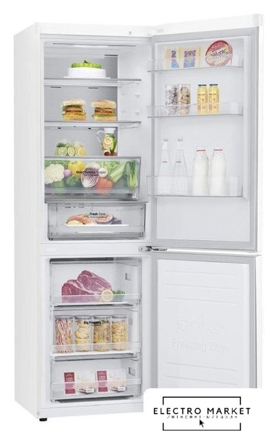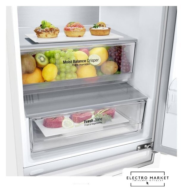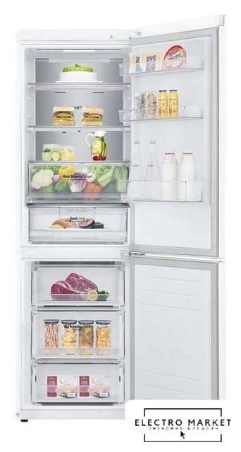 отдельностоящий, No Frost (морозильная камера), электронное управление, класс A, полезный объём: 360 л (266 + 94 л), инверторный компрессор, перенавешиваемые двери, лоток для яиц, 59.7x67.5x201.5 см, белый