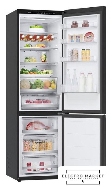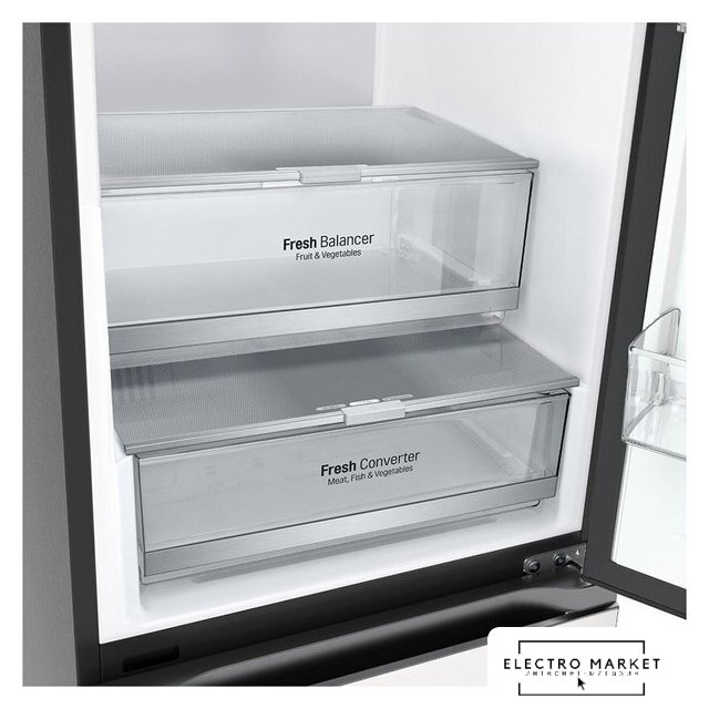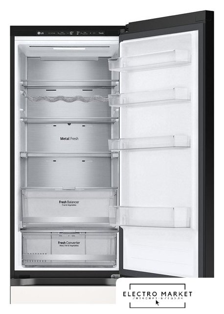 отдельностоящий, полный No Frost, электронное управление, класс A++, полезный объём: 451 л (329 + 122 л), инверторный компрессор, складная полка, лоток для яиц, 70x70x185 см, черный