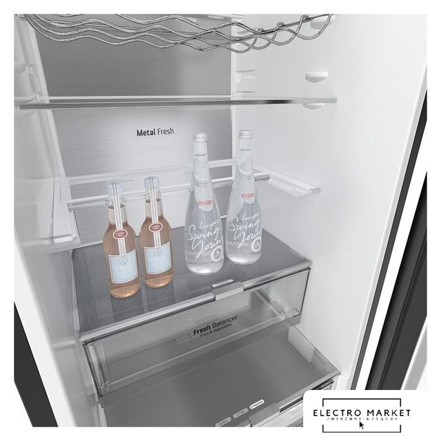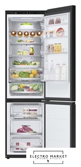 отдельностоящий, полный No Frost, сенсорное управление, класс A+, полезный объём: 540 л (354 + 186 л), инверторный компрессор, зона свежести, лоток для яиц, отделка: стекло, 85x68x191 см, черный