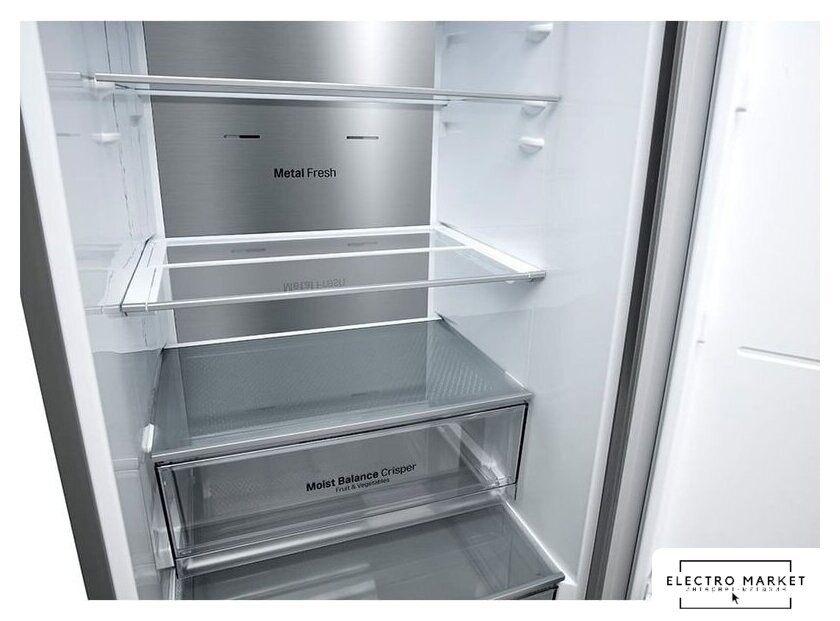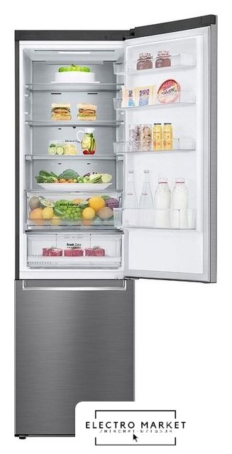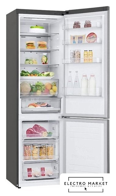 отдельностоящий, полный No Frost, электронное управление, класс A+, полезный объём: 466 л (283 + 183 л), инверторный компрессор, лоток для яиц, отделка: стекло, 91x60x183.6 см, графит
