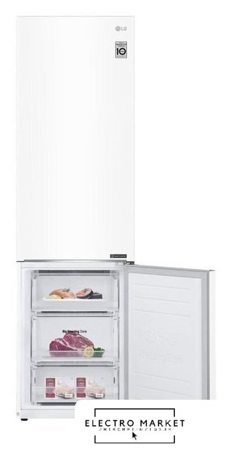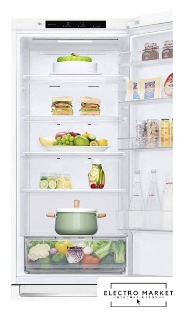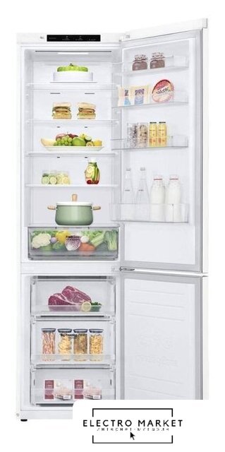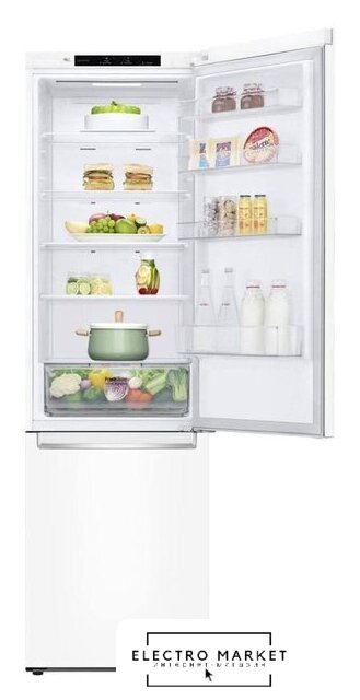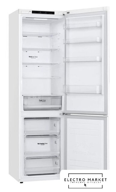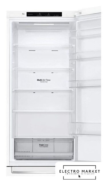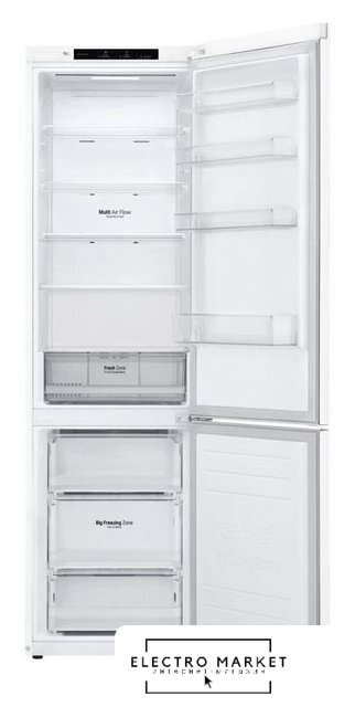 отдельностоящий, полный No Frost, электронное управление, класс A+, полезный объём: 384 л (277 + 107 л), инверторный компрессор, перенавешиваемые двери, складная полка, лоток для яиц, 59.5x68.2x203 см, белый