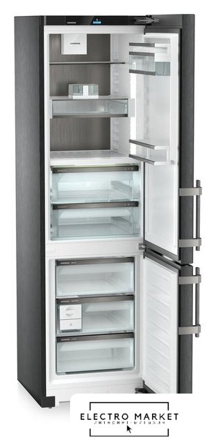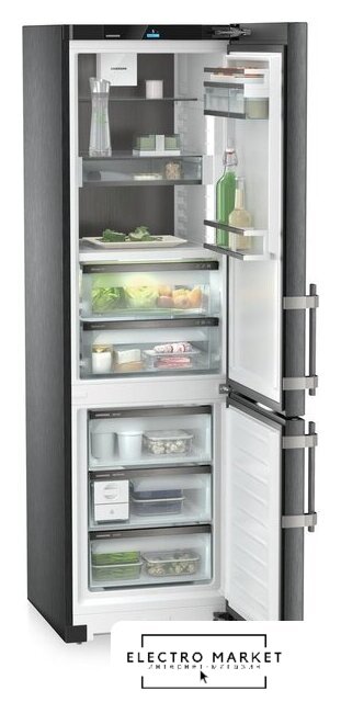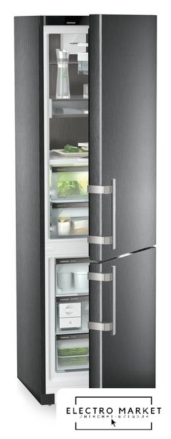 отдельностоящий, полный No Frost, сенсорное управление, полезный объём: 574 л (375 + 199 л), инверторный компрессор, зона свежести, диспенсер, полка для вина, лоток для яиц, отделка: защита от отпечатков, 90.5x73.1x183 см, темная сталь