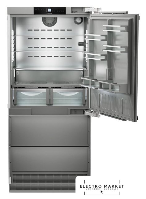 встраиваемый, жесткое, No Frost (морозильная камера), электронное управление, полезный объём: 523 л (363 + 160 л), инверторный компрессор, зона свежести, перенавешиваемые двери, автодоводчик дверей, полка для вина, лоток для яиц, 91x61x202.7 см, серебристый