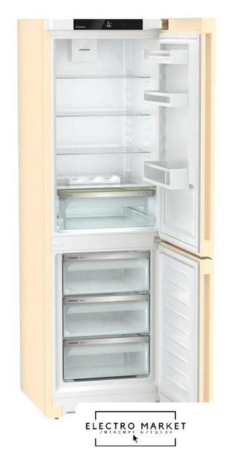 отдельностоящий, полный No Frost, электронное управление, класс A+, полезный объём: 459 л (186 + 167 л), инверторный компрессор, лоток для яиц, отделка: стекло, 91.1x63.6x183 см, бежевый