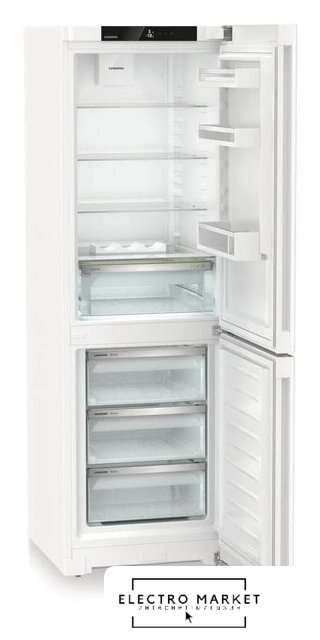 отдельностоящий, No Frost (морозильная камера), электронное управление, класс A, полезный объём: 360 л (266 + 94 л), инверторный компрессор, перенавешиваемые двери, лоток для яиц, 59.7x67.5x201.5 см, белый