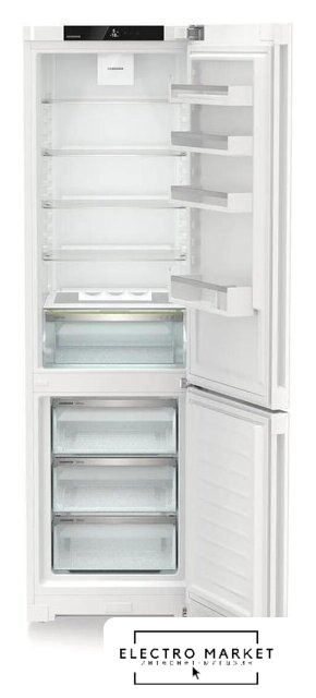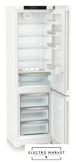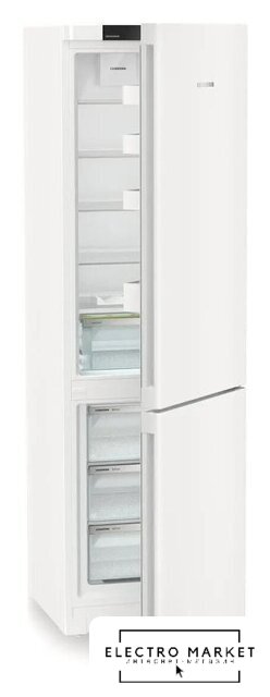 отдельностоящий, полный No Frost, электронное управление, класс A+, полезный объём: 351 л (257 + 94 л), перенавешиваемые двери, полка для вина, лоток для яиц, отделка: стекло, 59.5x63.5x200 см, белый