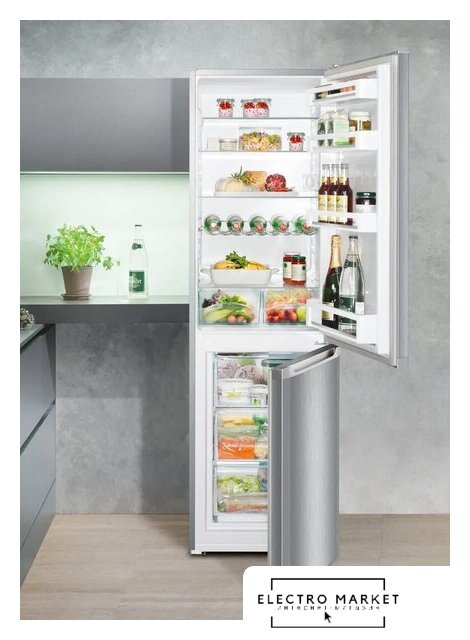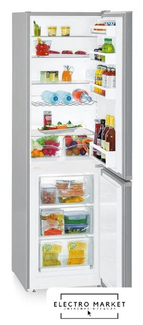отдельностоящий, полный No Frost, электронное управление, класс A, полезный объём: 298 л (220 + 78 л), перенавешиваемые двери, лоток для яиц, 60x64x185 см, нержавеющая сталь