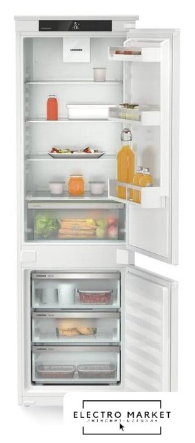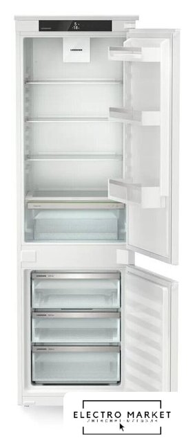 встраиваемый, плоские шарниры, без No Frost, электронное управление, полезный объём: 272 л (209 + 63 л), перенавешиваемые двери, лоток для яиц, 55.8x54.5x177.2 см, белый