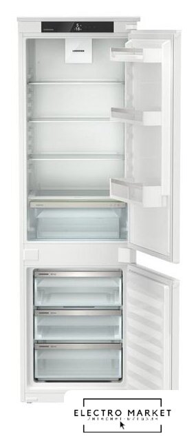 встраиваемый, без No Frost, электронное управление, класс A+, полезный объём: 272 л (195 + 72 л), перенавешиваемые двери, лоток для яиц, 54x54.9x177.9 см, белый