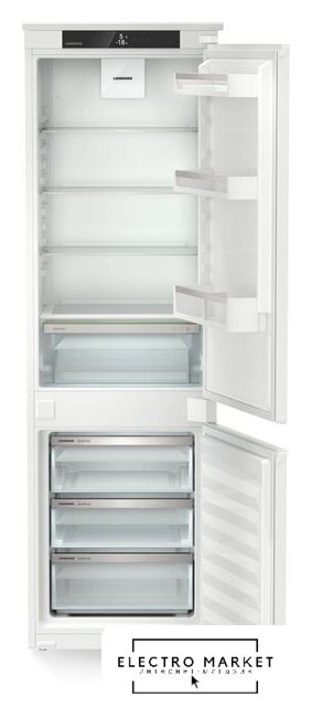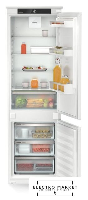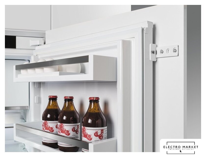 встраиваемый, скользящие направляющие, без No Frost, электронное управление, класс A+, полезный объём: 270 л (195 + 75 л), перенавешиваемые двери, полка для вина, лоток для яиц, 54x55x176.9 см, белый