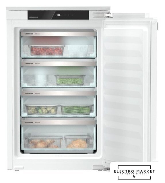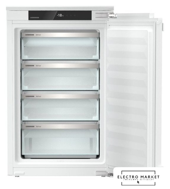 встраиваемый, полный No Frost, электронное управление, класс A++, полезный объём: 254 л (185 + 69 л), инверторный компрессор, зона свежести, перенавешиваемые двери, полка для вина, лоток для яиц, 54x54.5x177.5 см, белый